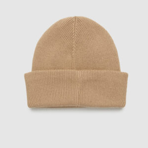 Rib-knit beanie with cotton patch detail made from 100% organic cotton yarn. Thicker structure ready to keep your ears warm in your casual look.