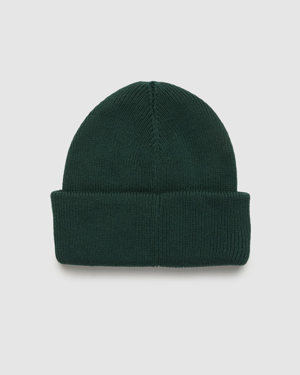 Rib-knit beanie with cotton patch detail made from 100% organic cotton yarn. Thicker structure ready to keep your ears warm in your casual look.