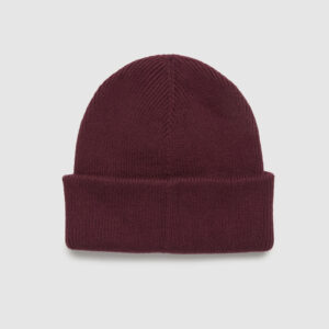 Rib-knit beanie with cotton patch detail made from 100% organic cotton yarn. Thicker structure ready to keep your ears warm in your casual look.