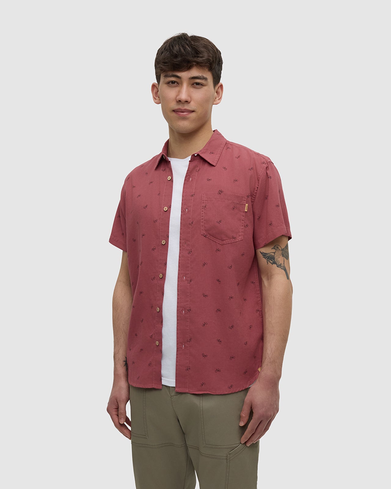 Wherever you’re headed, this all-over print shirt is built to come with. That’s because its unique blend of natural hemp and recycled polyester is breathable, comfortable — and as durable as they come.