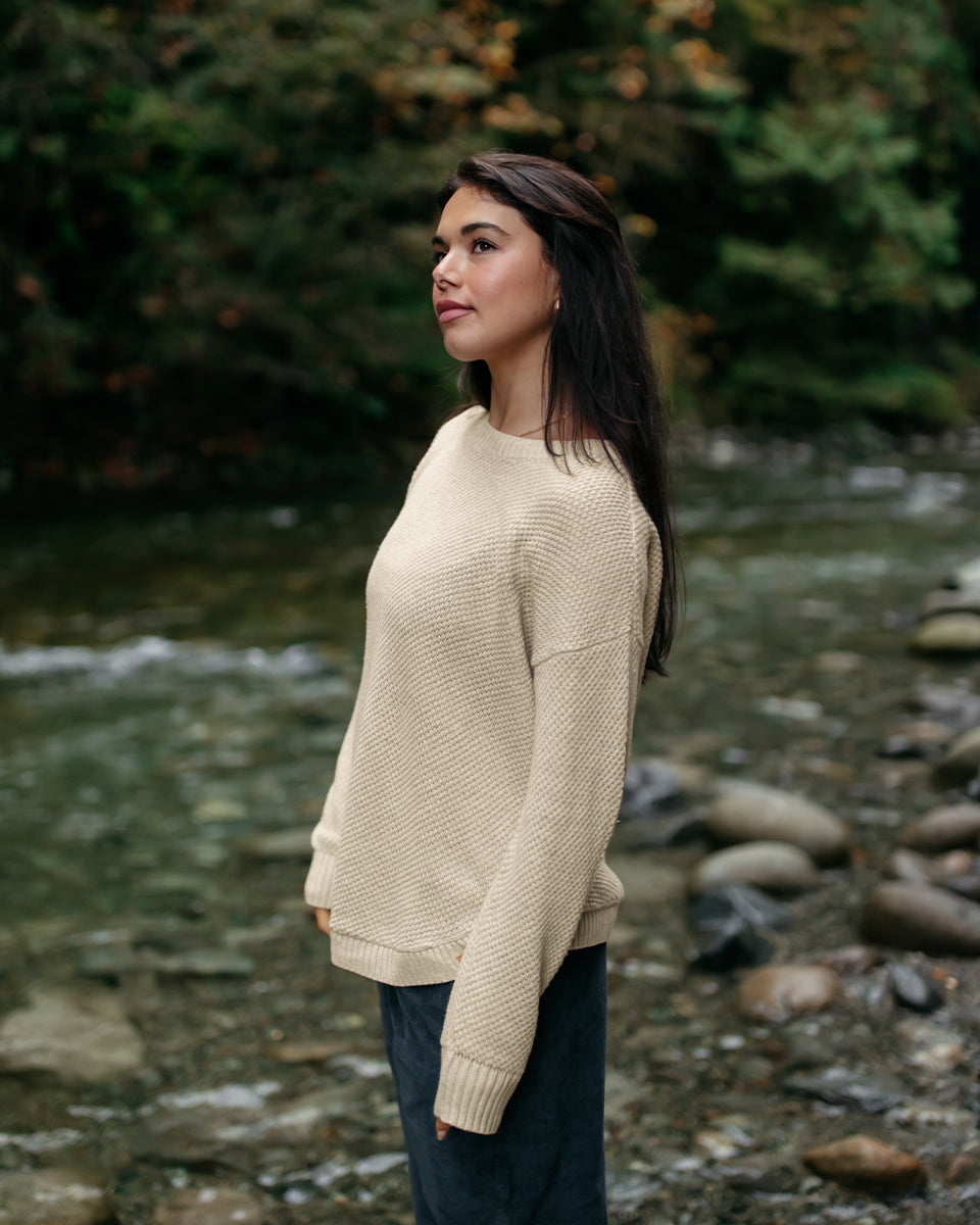 Ideal for all-season wear, this sustainable sweater features a new textured stitch that’ll add a little something extra to your spring style.