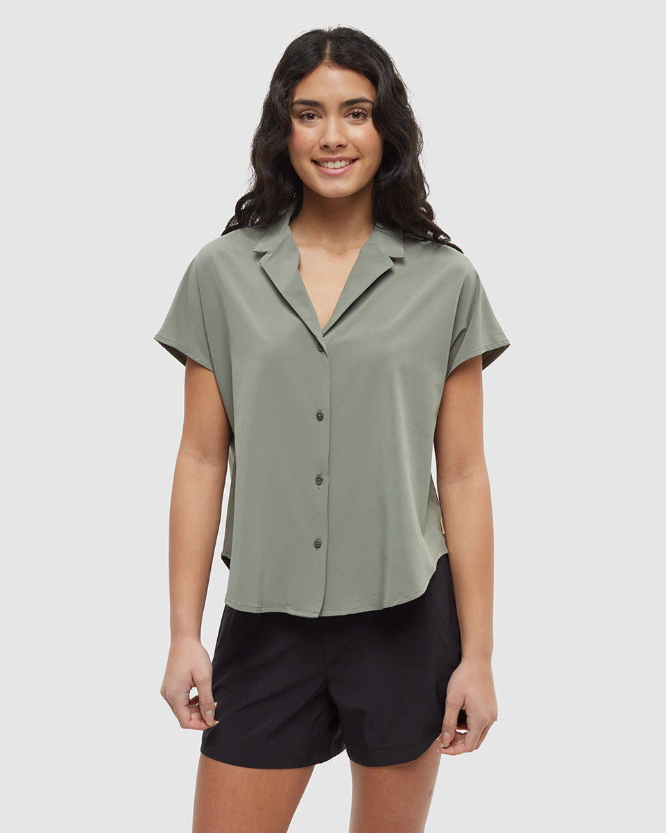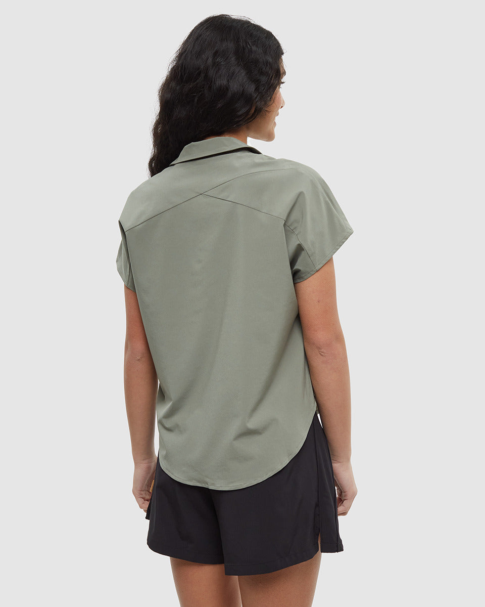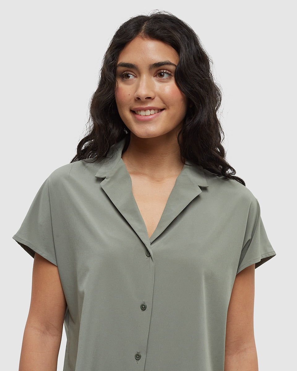 This button-up shirt looks casual, yet offers all the stretch and quick-drying capabilities of our InMotion fabric. But beyond comfort, its eco-friendly blend of recycled materials cuts Mother Earth (and your getting-ready routine) a break.