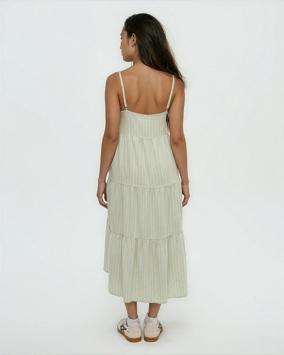 This tiered dress is a must-have for summer for a couple of reasons. One, it looks great. Two, it’s made with natural hemp and Tencel fibres, so you can stay outside longer. Bonus.