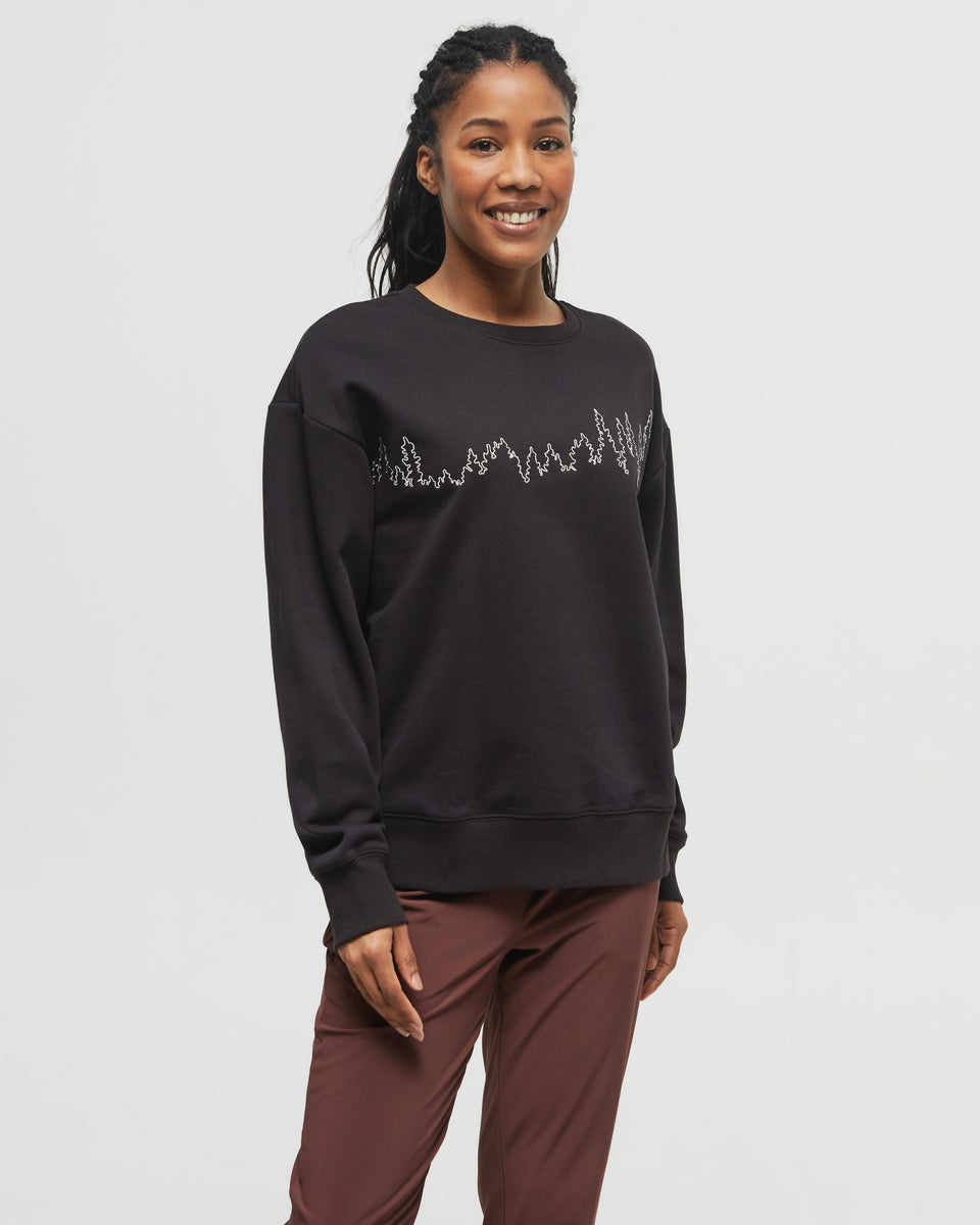 Inspired by our top-selling juniper graphic, this new TreeFleece crew boasts an irresistibly soft touch from recycled materials, with a new take on our favorite treeline.