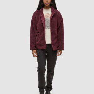 This everyday fleece works as hard as you chill — with a mock neck, zippered pockets, a full snap front, and sherpa-bonded to microfleece fabric that keeps warmth in and the cold out.