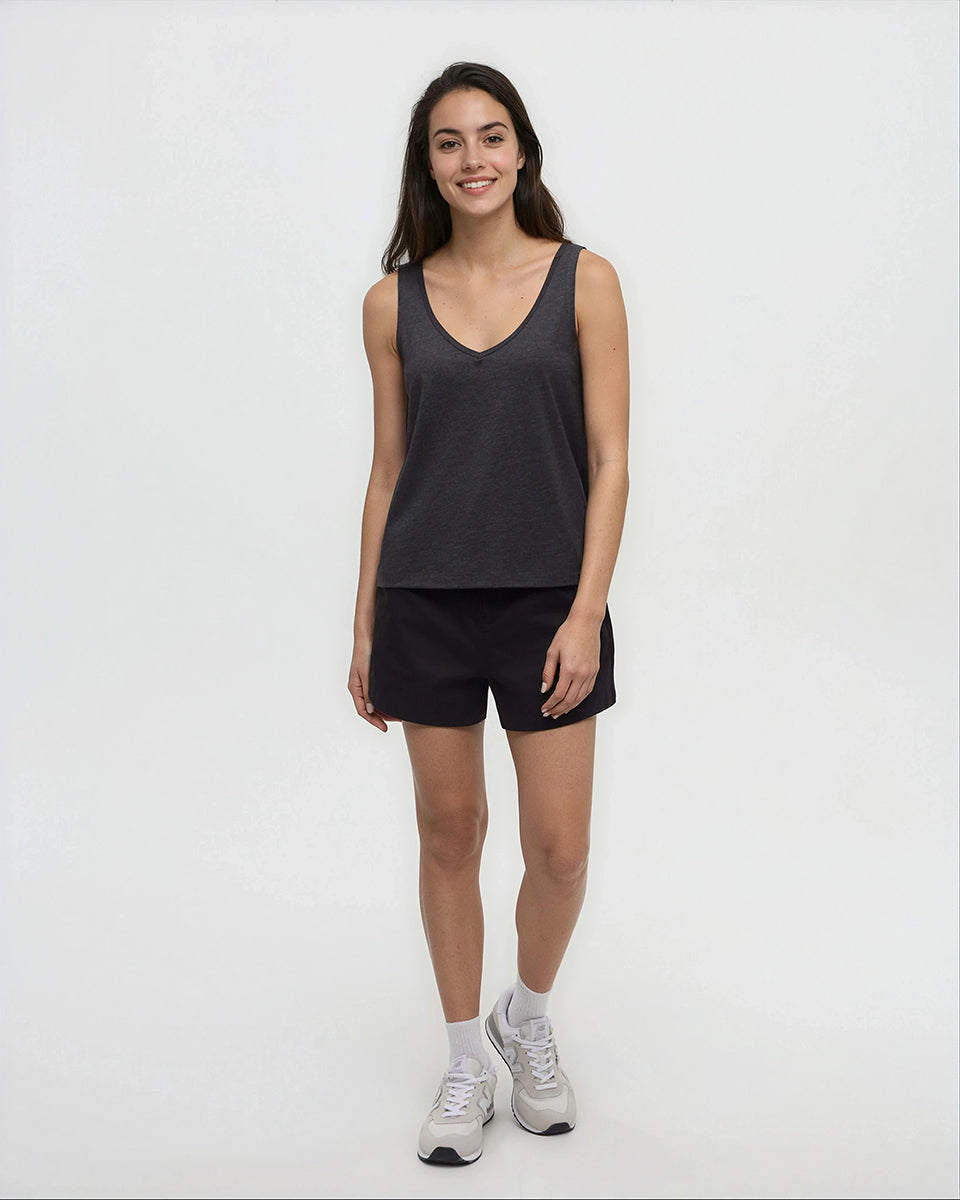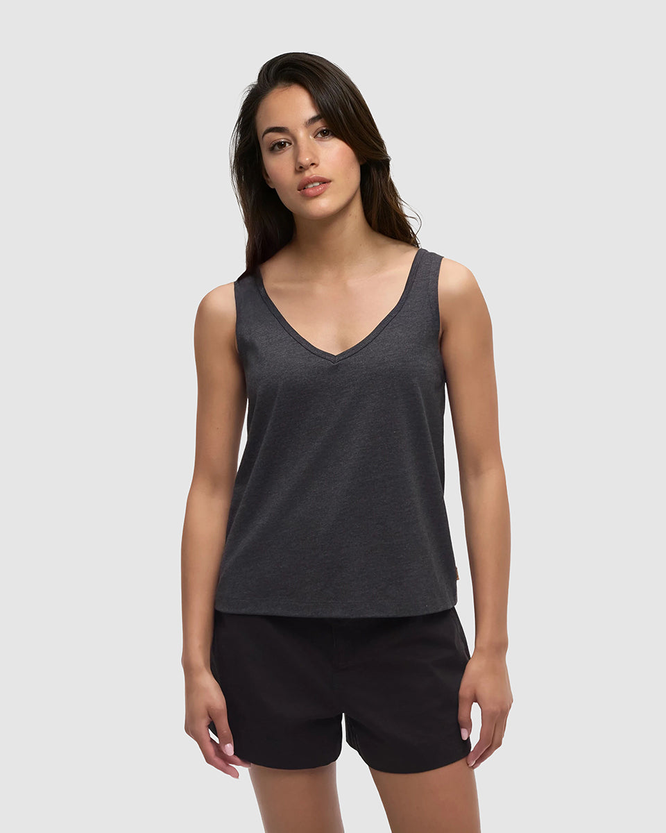 Timeless, simple — this double v-neck TreeBlend tank is a sustainable staple that speaks for itself.