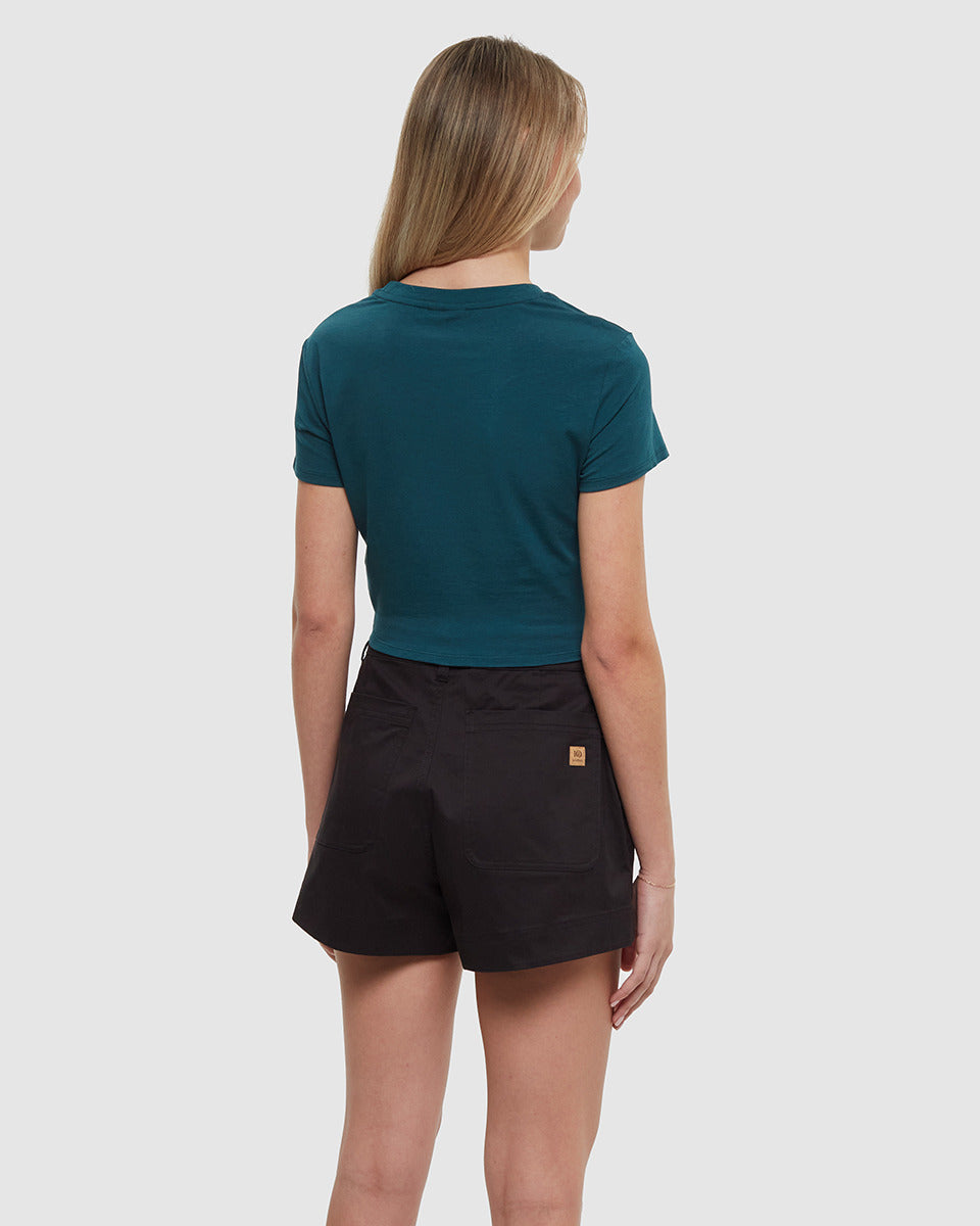 An everyday t-shirt with a twist — literally. This stretchy twist-front tee is crafted from silky soft EcoTech Jersey that keeps you cool on the move and our planet cool for the future.