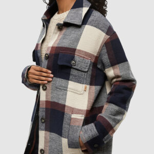 Get wrapped up in the cozy durability of our long plaid jacket. Made from organic cotton, this classic button-up is your perfect companion for all your fall adventures.