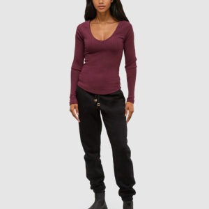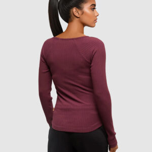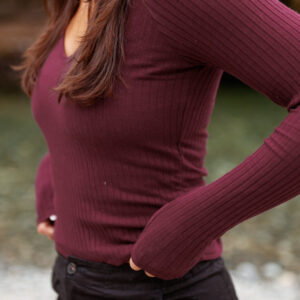 Soft and stretchy, this wide rib V-neck features raglan sleeves and a scooped hem that’s easy to move in, whether you’re out and about or just taking it slow.