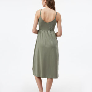 I love this dress. It’s super soft, stretchy, and I love the green color. I’m 4’11” and the dress hit my mid-calf. Even though it’s more of a warm-weather dress, I easily dressed this up for cold weather by layering a long sleeve underneath. I can’t wait to see tentree releases more colors!