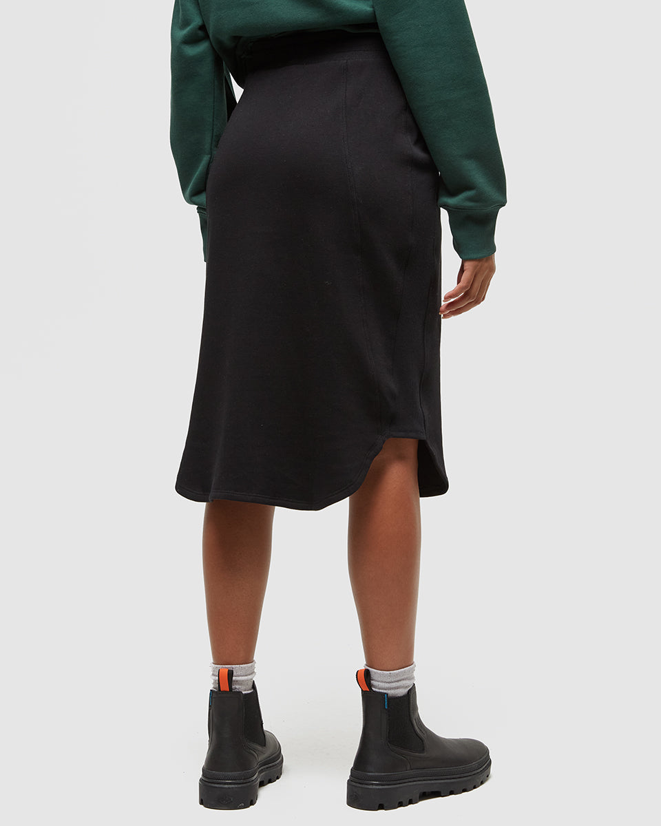 An easy yes for cooler days. This pull-on skirt is made from our super-soft TreeFleece with an adjustable waistband and ribbed side panels for a comfortable, flattering fit you can throw on and go.
