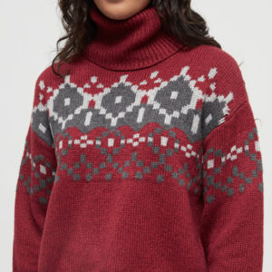 Imagine all your favorite holiday rom-com moments wrapped up in one ethically produced wool blend turtleneck. With its original intarsia pattern, this sweater evokes all the seasonal feels.
