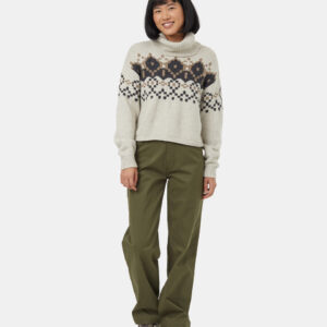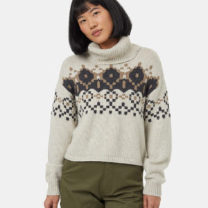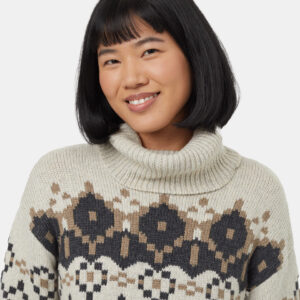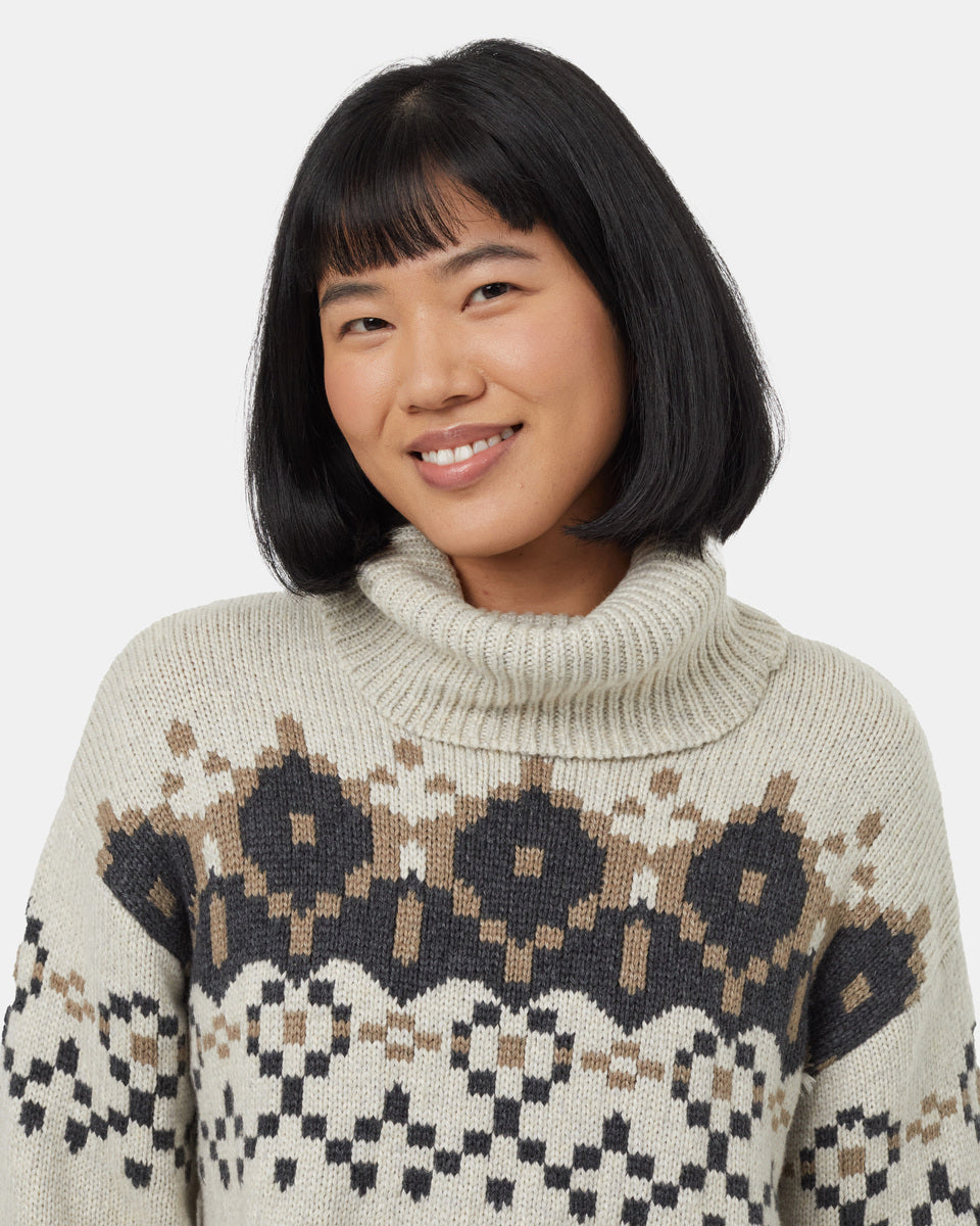 Imagine all your favorite holiday rom-com moments wrapped up in one ethically produced wool blend turtleneck. With its original intarsia pattern, this sweater evokes all the seasonal feels.