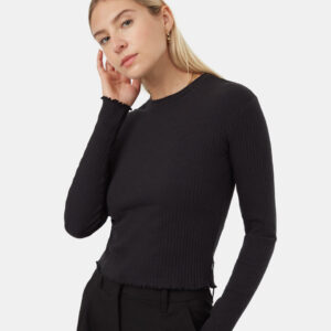 An everyday longsleeve with a bit of stretch, this ribbed lettuce-edge top brings comfort and a bit of texture to whatever you’re up to.
