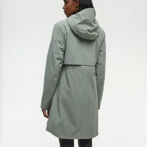 I recently received this jacket. It held up in the rain and kept me dry. It’s cute. I do like that the sleeves are not tight at the ends but don’t like that the seam appears a bit on the inside of the sleeve and in some parts on the outside. This might be something that straightens out with time and truly not a big deal. Seems like it is good quality.