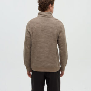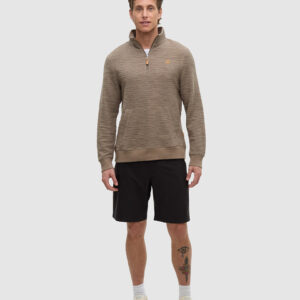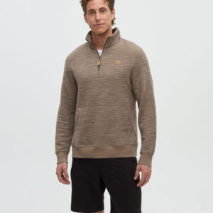 Knit with a distinctive striped effect, this sweater is cut from a blend of cotton and polyester fabric to keep things breathable. Although it wears like a soft sweater, it looks a little extra sharp. Amazing what a quarter-zip can do.