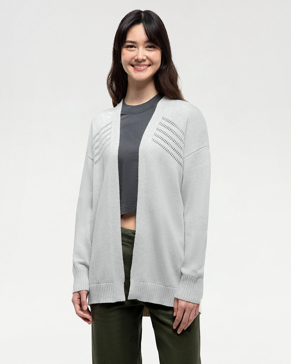 Meet your new favorite Cardigan. Made from sustainably sourced organic cotton, this open-front style has a unique stitch pattern and a sleek straight hem.