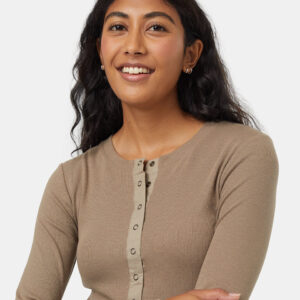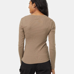 Pair a wide scoop neck with front snap buttons and Organic Cotton Modal Rib material, and what do you get? A timeless, layerable longsleeve that works as well up the mountain as it does out on the town.