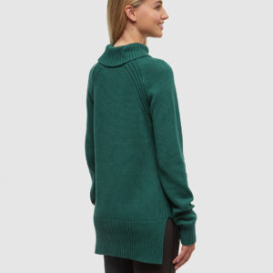 Cozy never looked so easy. This relaxed cowl neck sweater is made from soft organic cotton with stretch and subtle rib detailing — complete with side slits and a high-low hem for easy layering when the chill sets in.