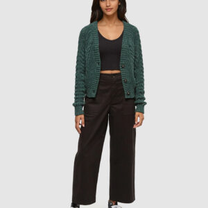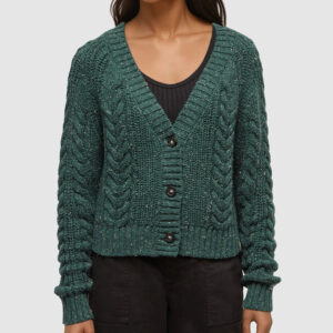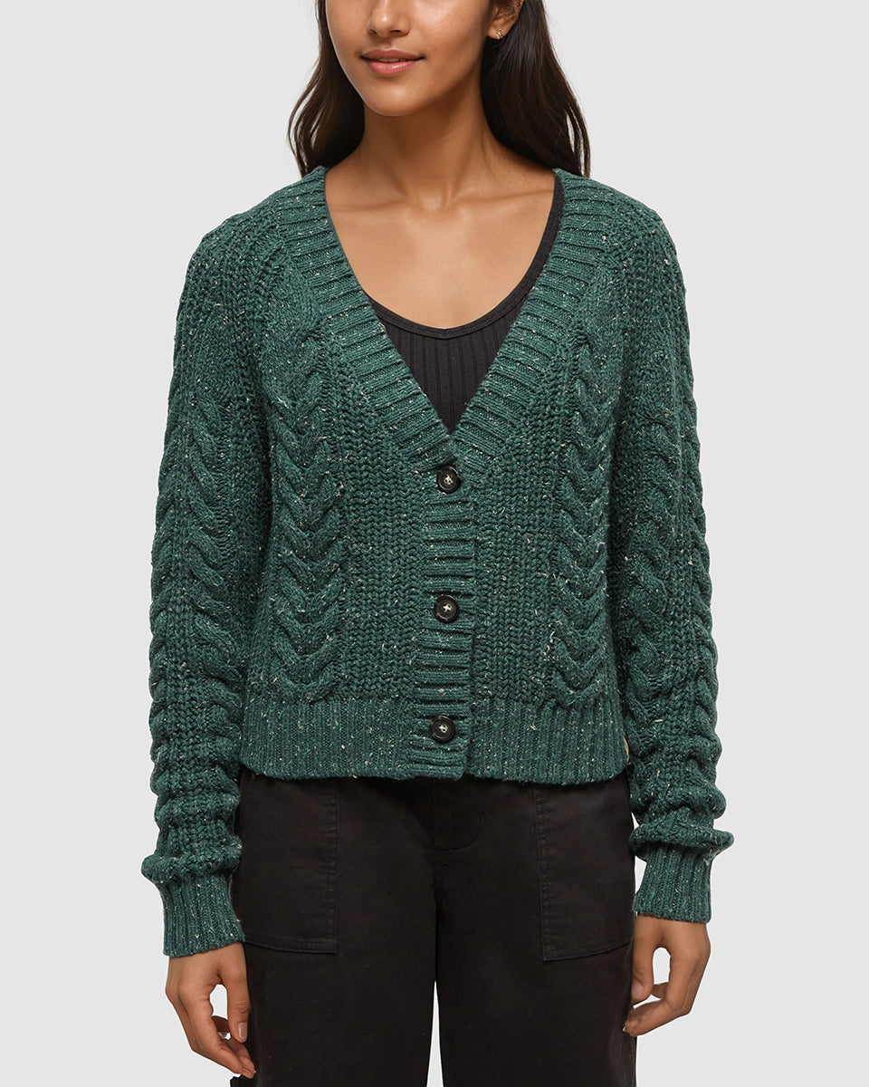 Soft, textured, and ready to layer. This cropped, relaxed-fit cable-knit cardigan pairs with tees, tanks, and chilly mornings with coffee in hand.