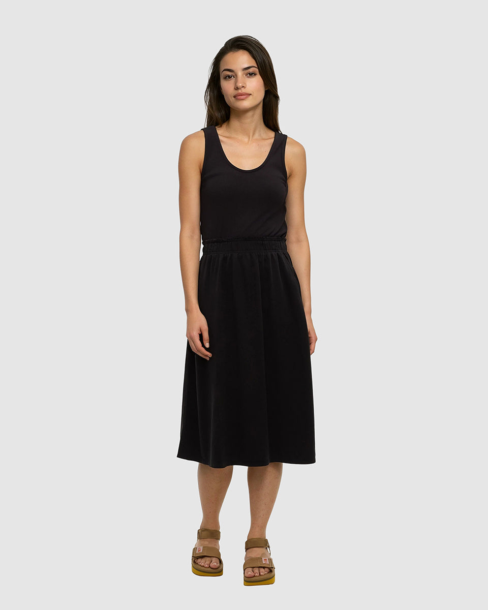 Pockets? Check. Midi length? Check. Elastic waist? Check. Designed with a relaxed fit and four-way stretch knit fabric, this dress is an easy everyday option to reach for and checks all the boxes.