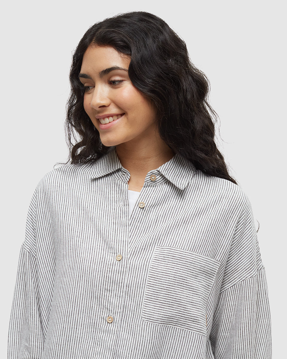 Equally ideal for backyard barbeques as for open-air gigs, this soft drape, oversized button-down is made from hemp and TENCELâ„¢ Lyocell, with breathable fibers that work to keep you cool.