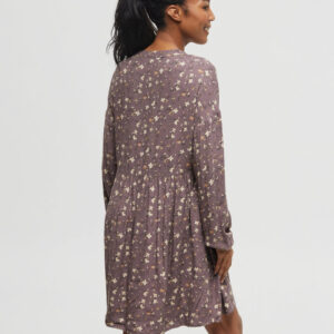 With a flattering v-neck and seasonal palette, this long sleeve dress adds a sophisticated touch to your layered autumn look.