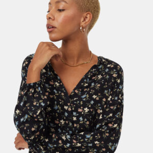 With a flattering v-neck and seasonal palette, this long sleeve dress adds a sophisticated touch to your layered autumn look.