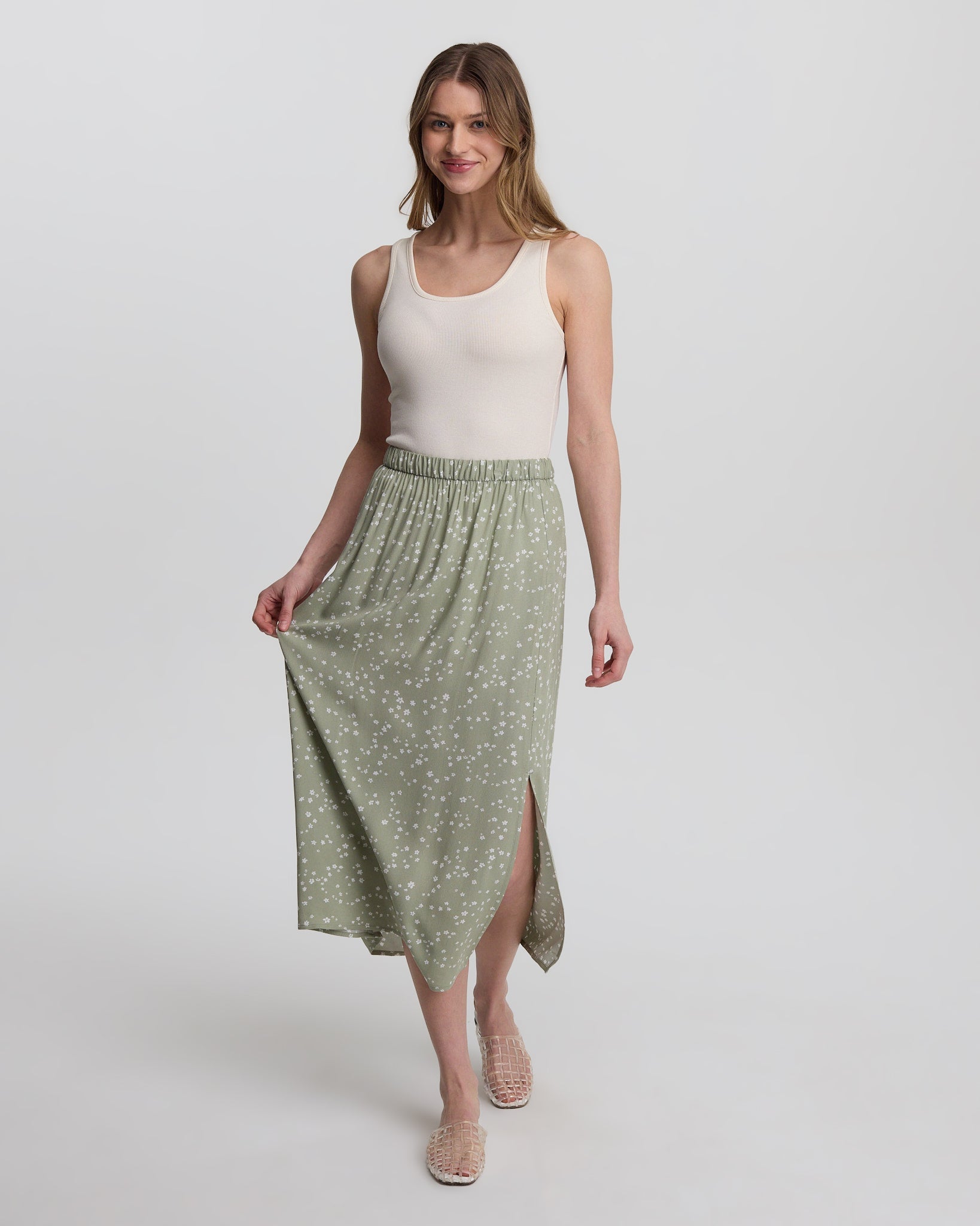 This pull-on printed skirt is made from fibres that are not only silky soft and breathable, but that help reduce waste and water usage in the apparel industry.